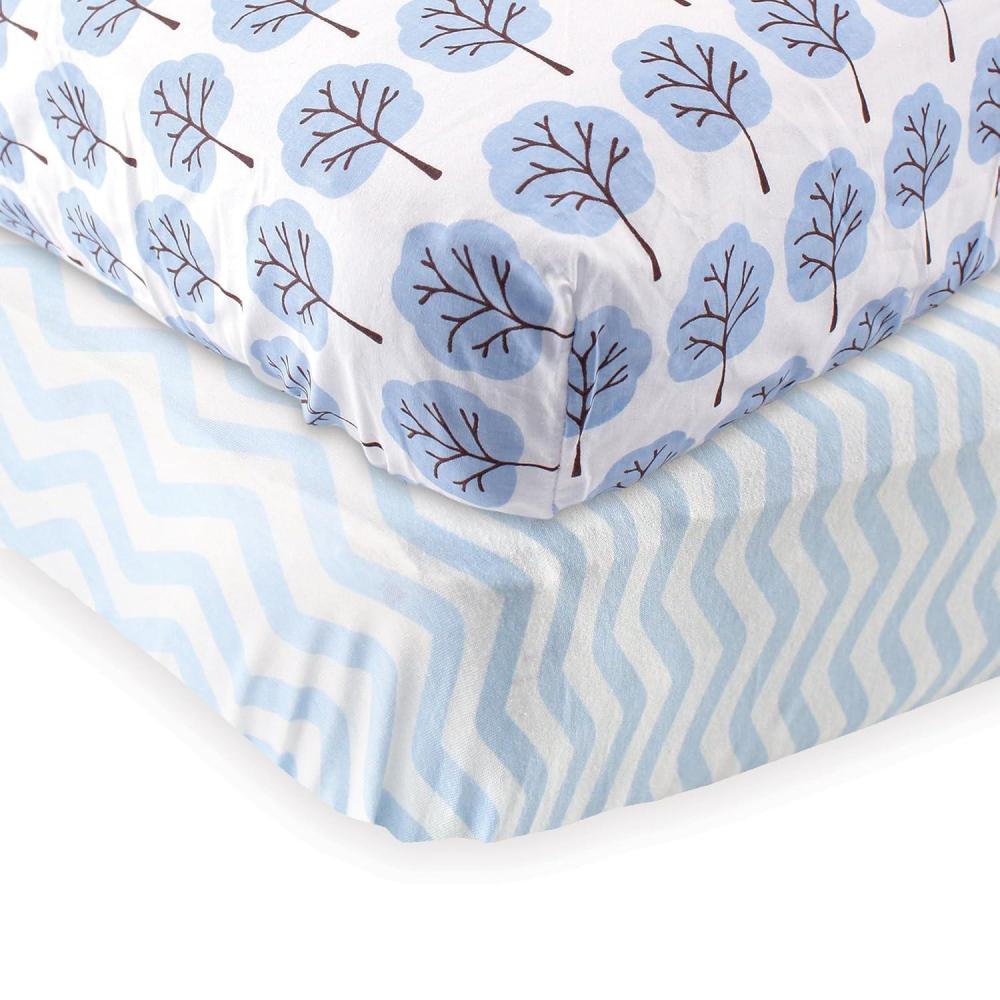 Fitted Crib Sheet 2-Pack(Blue Chevron/Blue Tree)