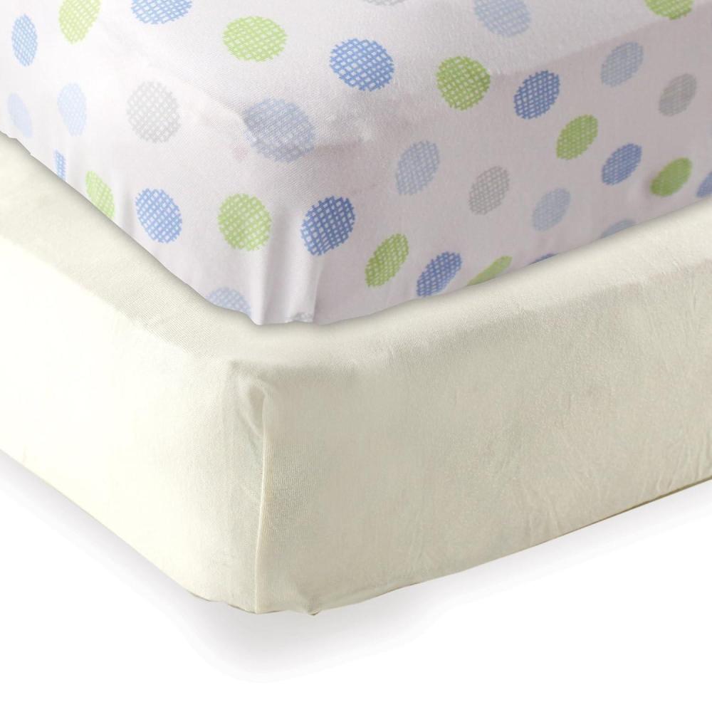 Fitted Crib Sheet 2-Pack(Ecru/Blue Dots)