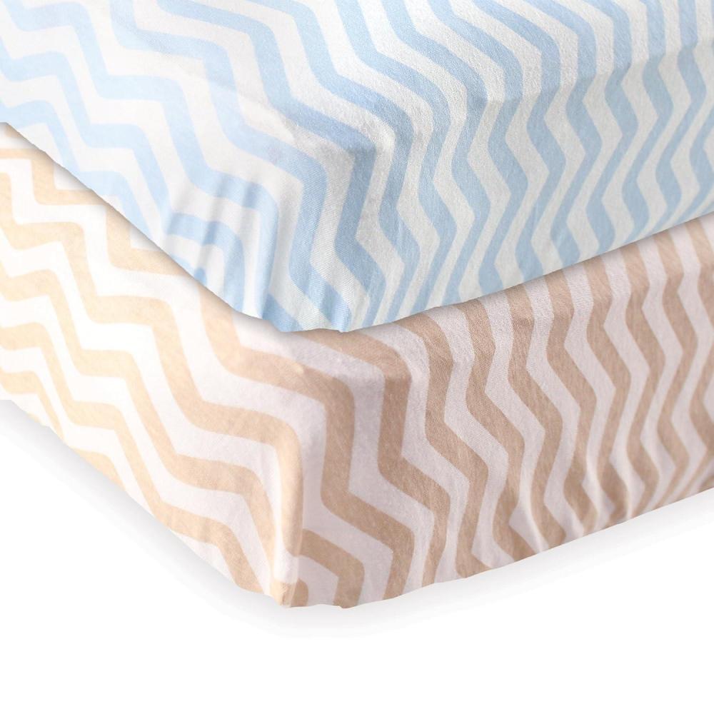 Fitted Crib Sheet 2-Pack(Tan Chevron/Blue)