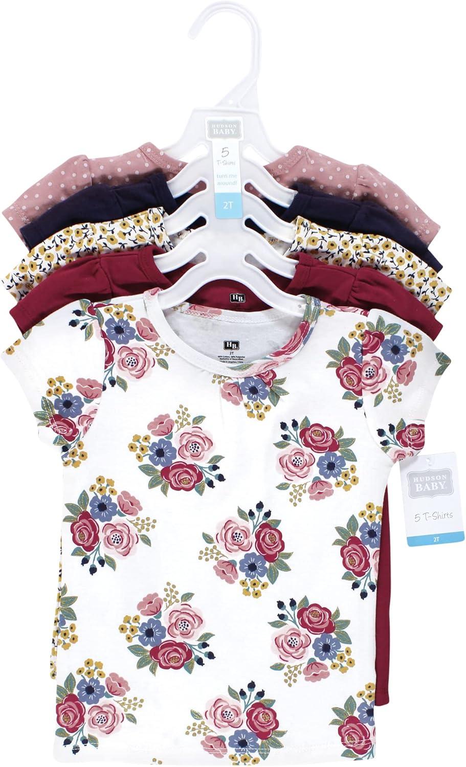 Hudson Baby t-shirts are great everyday tops for your little ones. Featuring fun prints and patterns, our t-shirts are made with comfortable, soft cotton poly fabric that feels wonderful on children's skin. Our sets include five t-shirts so you can mix and match with your child's wardrobe for fun everyday outfits.