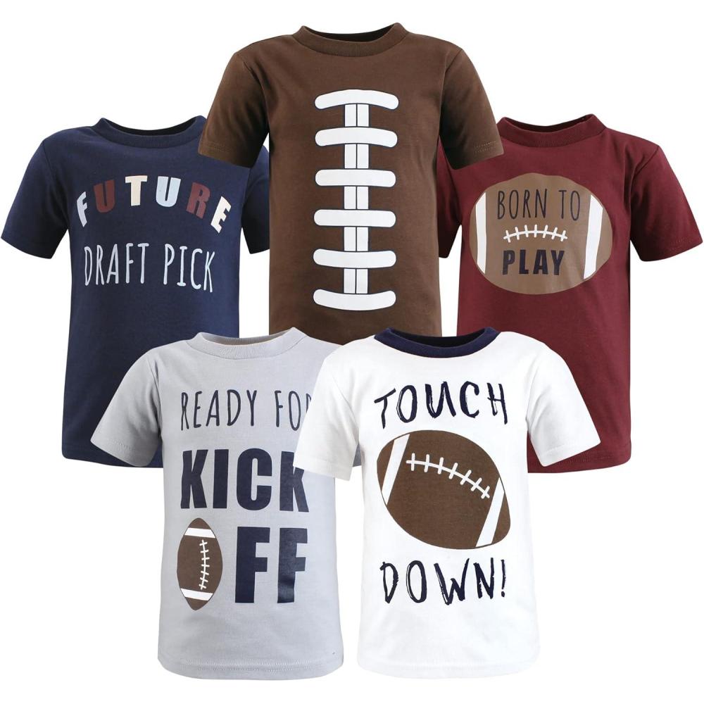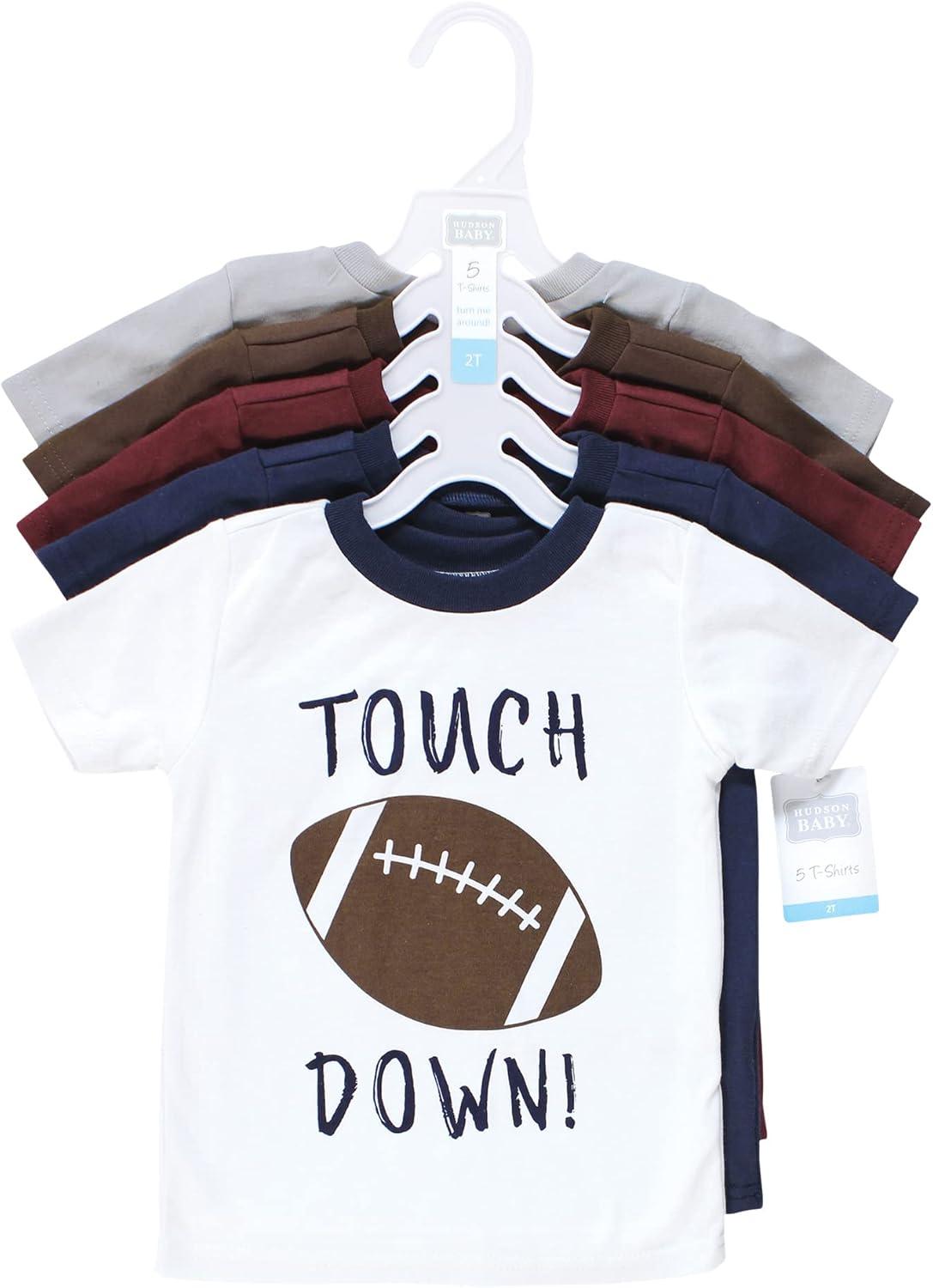 Hudson Baby t-shirts are great everyday tops for your little ones. Featuring fun prints and patterns, our t-shirts are made with comfortable, soft cotton poly fabric that feels wonderful on children's skin. Our sets include five t-shirts so you can mix and match with your child's wardrobe for fun everyday outfits.