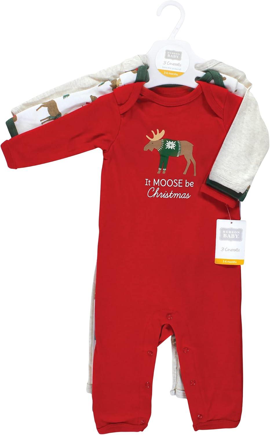 Hudson Baby unisex-child Cotton Coveralls(Moose Be Christmas)