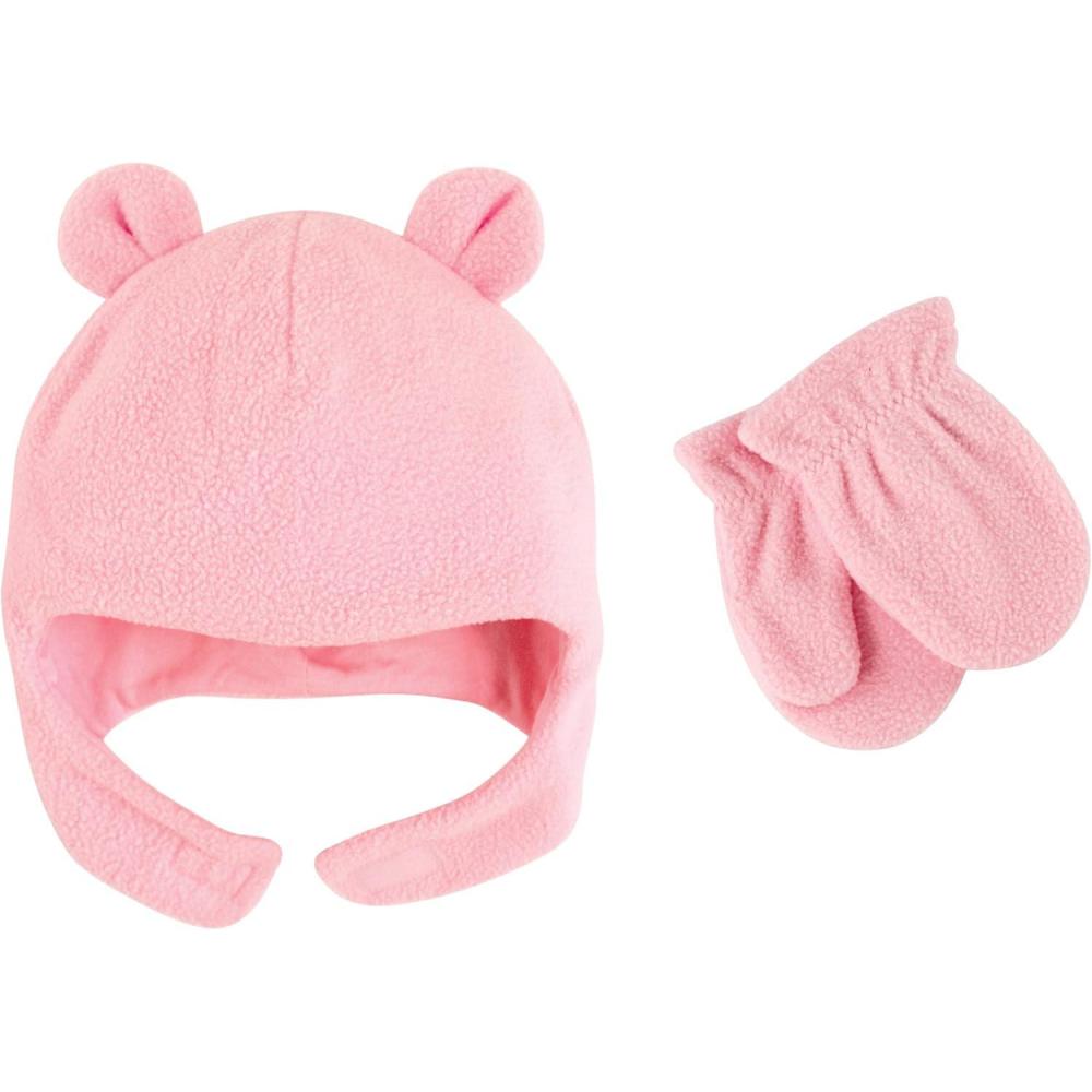 Luvable Friends Baby Girls’ Beary Cozy Hat and Mitten Set(Light Pink Baby)