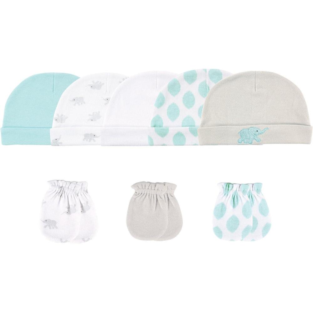 Luvable Friends Baby Girls’ Cotton Caps and Scratch Mittens(Elephant)