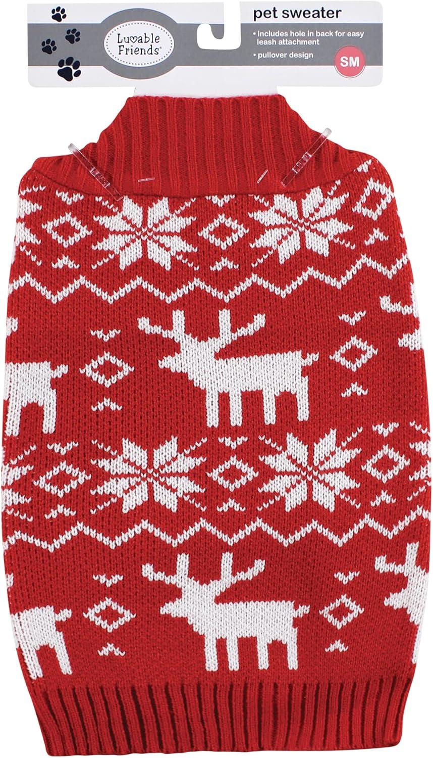 Luvable Friends Dogs and Cats Knit Pet Sweater, Buffalo Plaid, Small(Fair Isle)