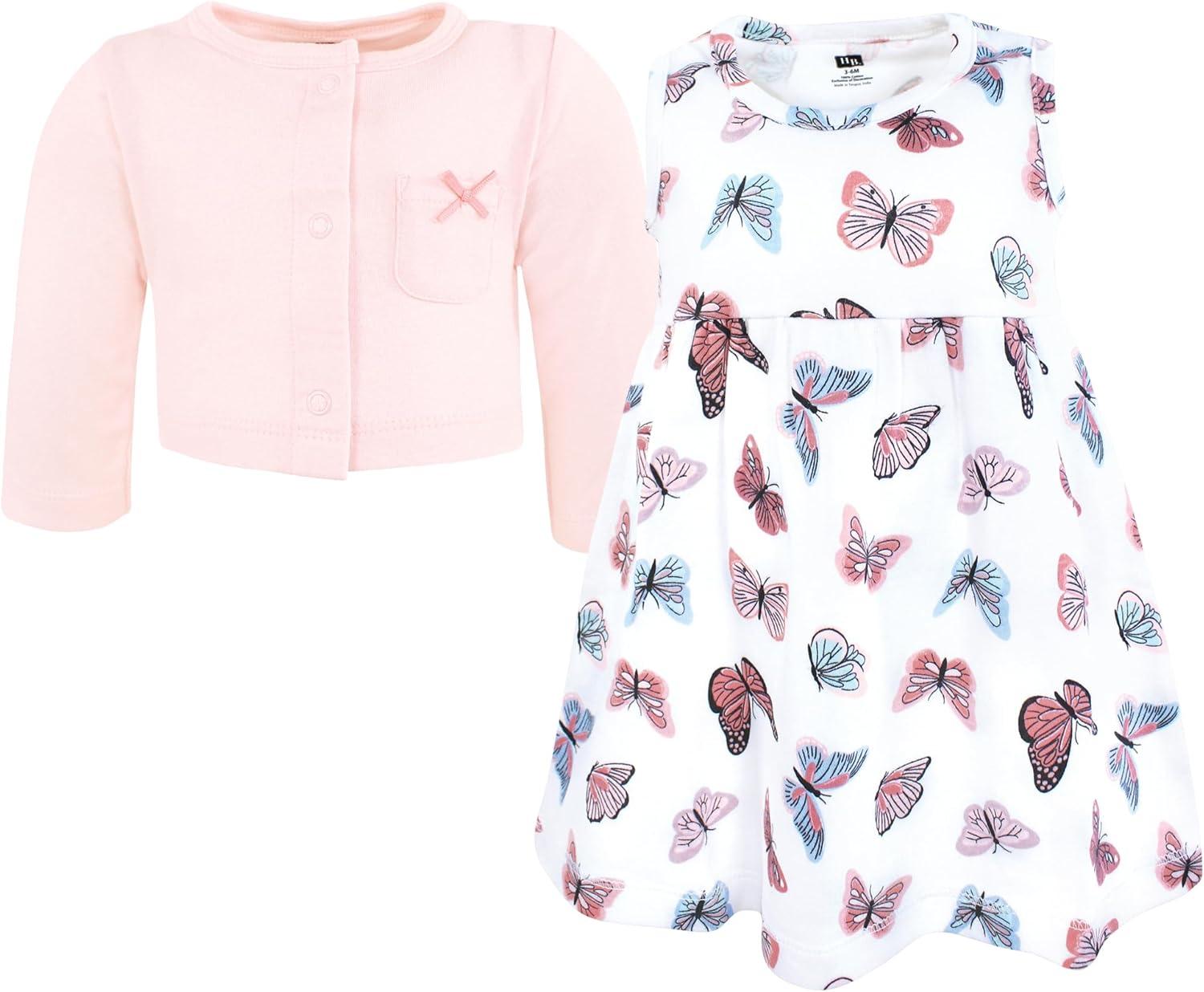 Luvable Friends Hudson Baby dress and blouse pairing creates an adorable clothing option suitable for your little girl throughout the year. Both pieces, the dress and the coordinating cardigan, are crafted from wonderfully soft 100% cotton material. The dress is designed to help stay cool, while the cardigan includes long sleeves and a convenient snap fastening for cooler temperatures. Features charming complementary colors and patterns.