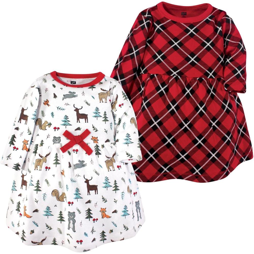 Luvable Friends Hudson Baby Long-Sleeve Dresses 2pk(Forest Critters Red)