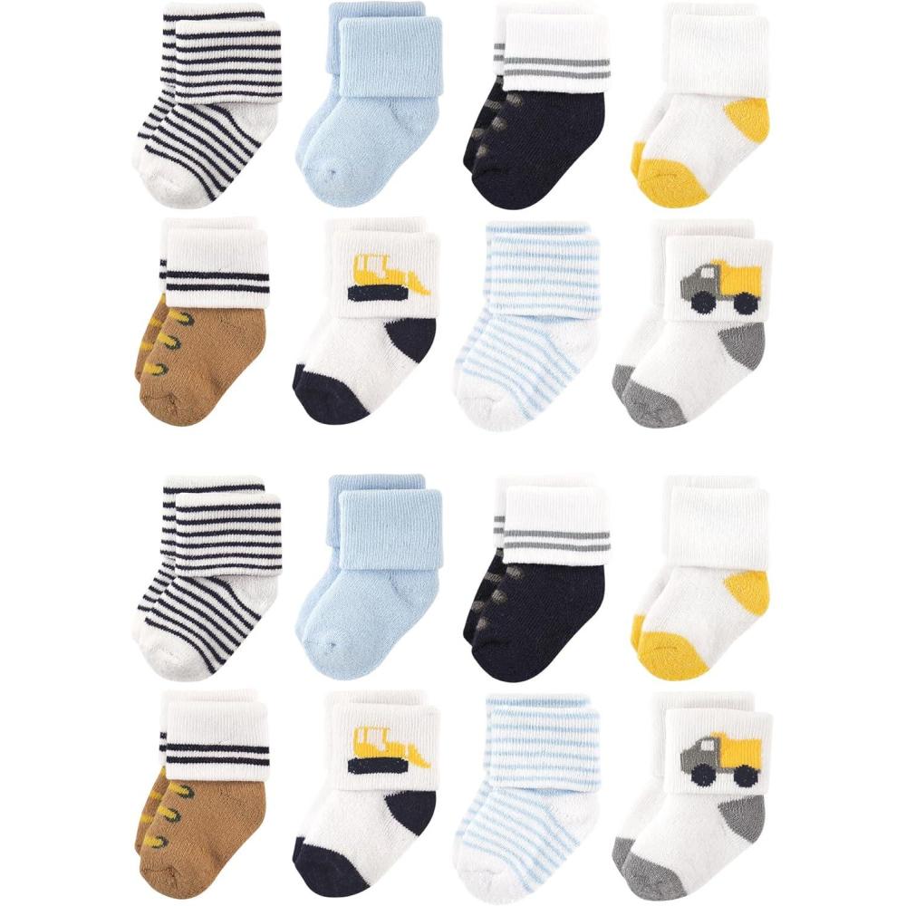 Luvable Friends Unisex Baby Baby Cotton Rich Terry Socks 16-Pack(Bulldozer)