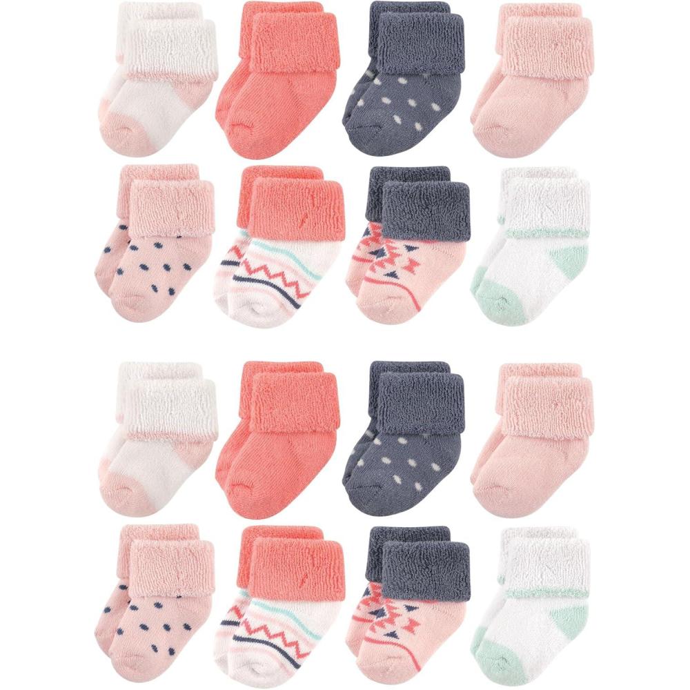 Luvable Friends Unisex Baby Baby Cotton Rich Terry Socks 16-Pack(Girl Pink Polka Dot)