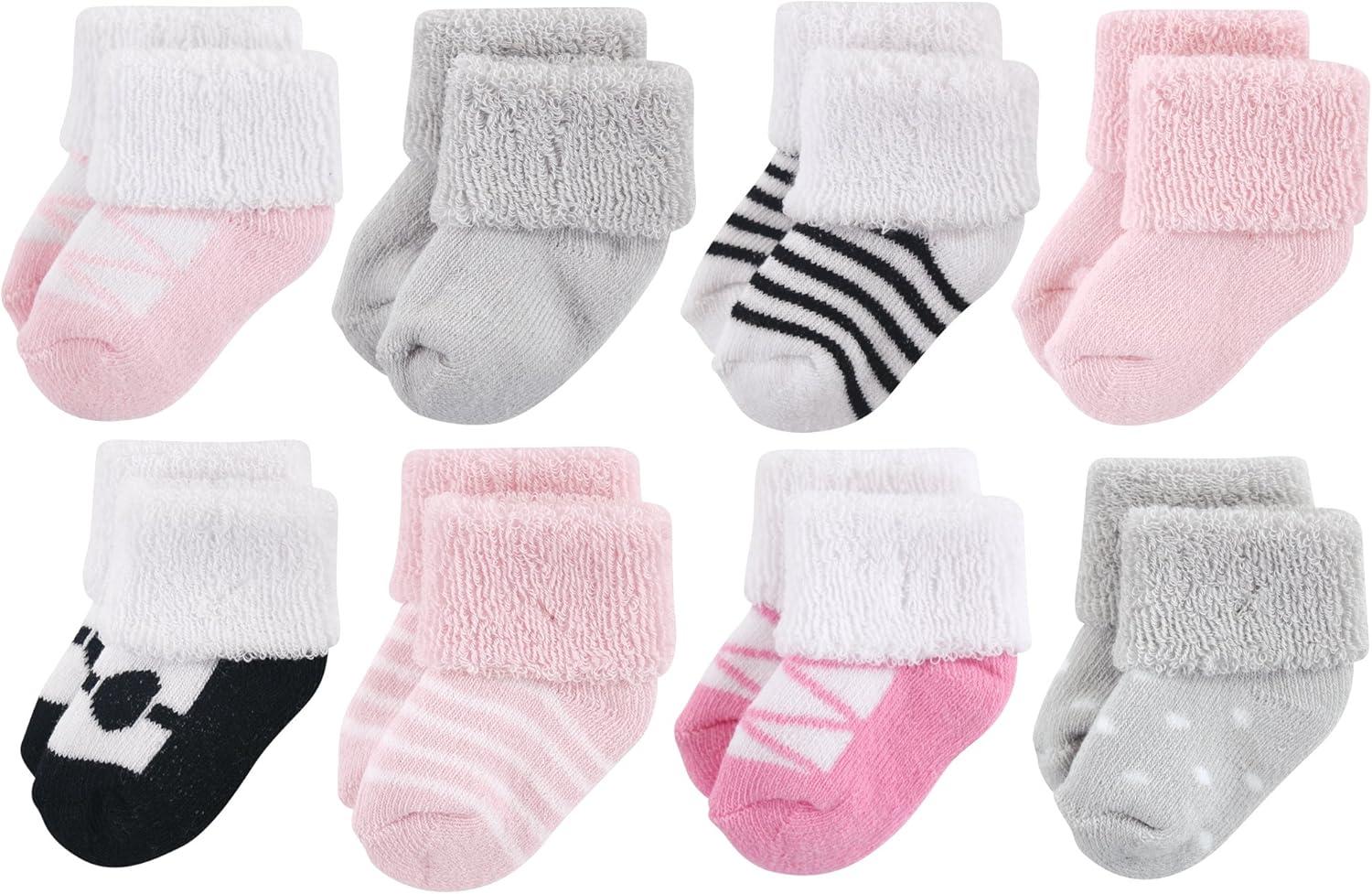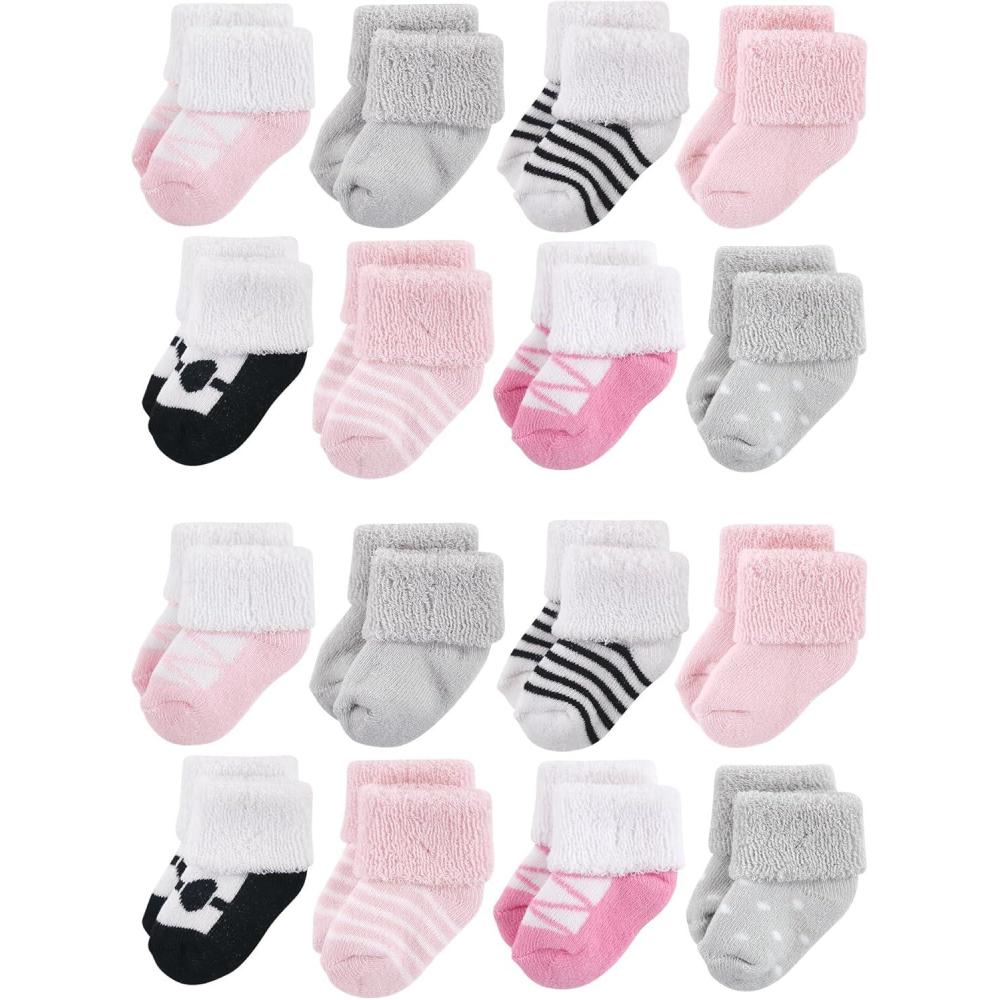 Luvable Friends Unisex Baby Baby Cotton Rich Terry Socks 16-Pack(Pink Black)