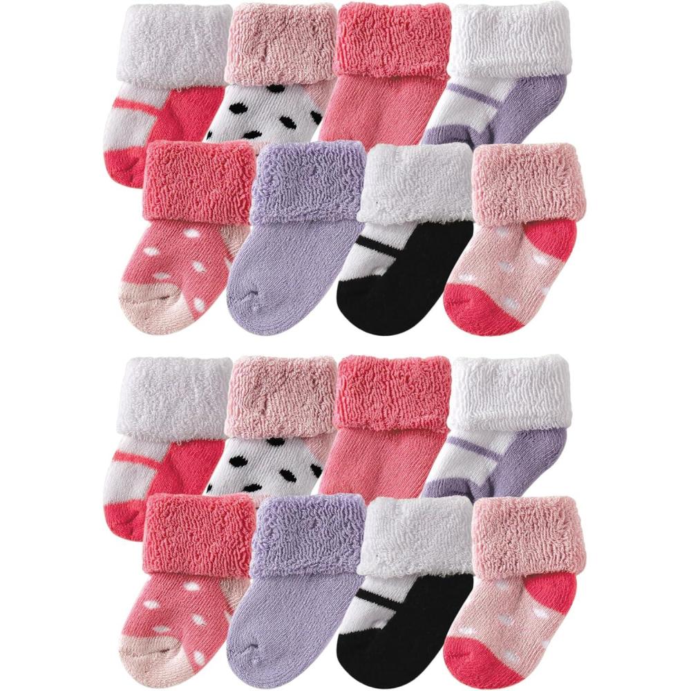 Luvable Friends Unisex Baby Baby Cotton Rich Terry Socks 16-Pack(Pink Black)