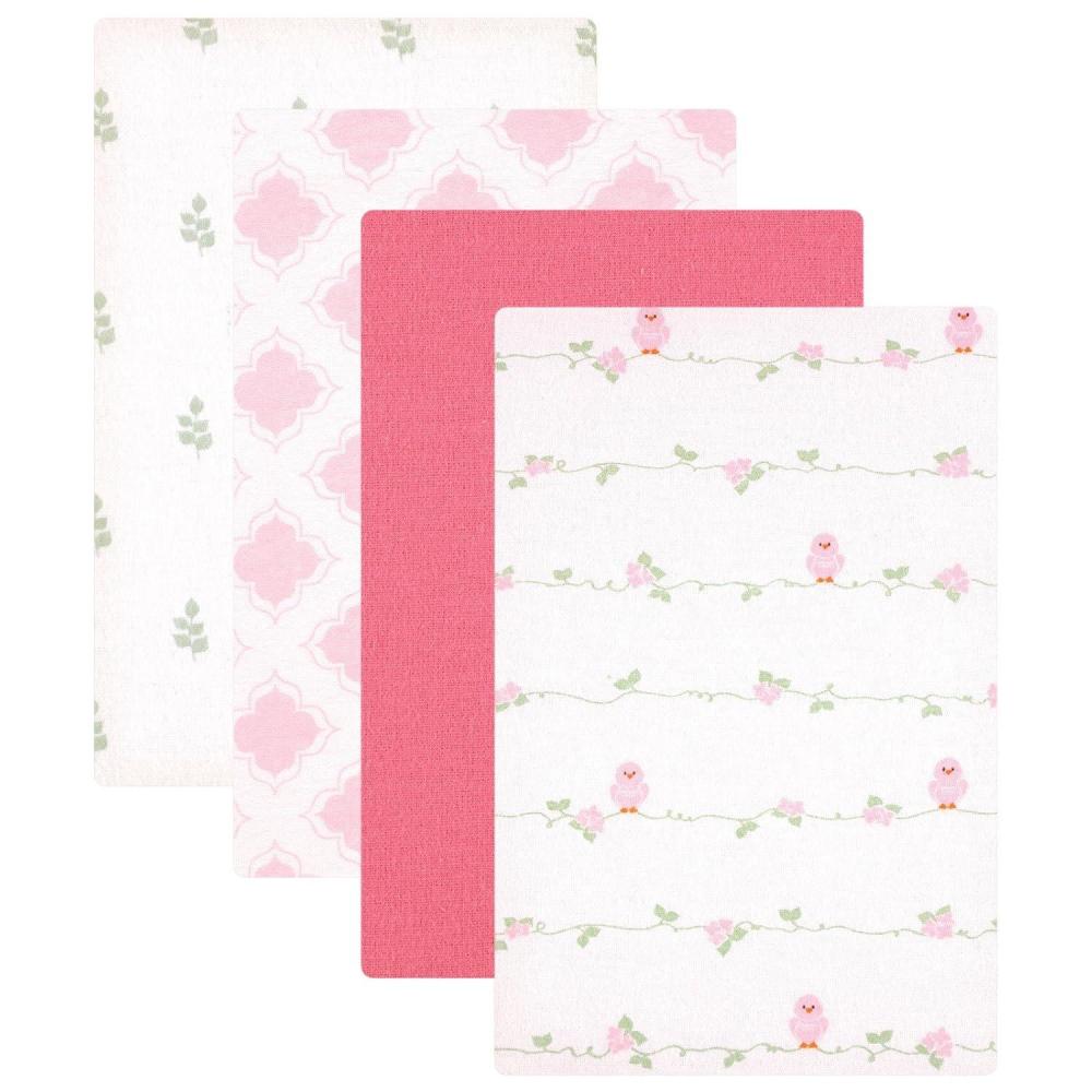 Luvable Friends Unisex Baby Cotton Flannel Receiving Blankets, Tribe 4-Pack, One Size(Birdies 4-pack)