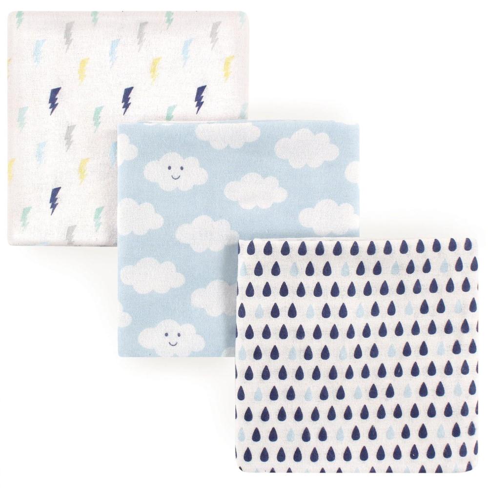 Luvable Friends Unisex Baby Cotton Flannel Receiving Blankets, Tribe 4-Pack, One Size(Boy Clouds 3-pack)