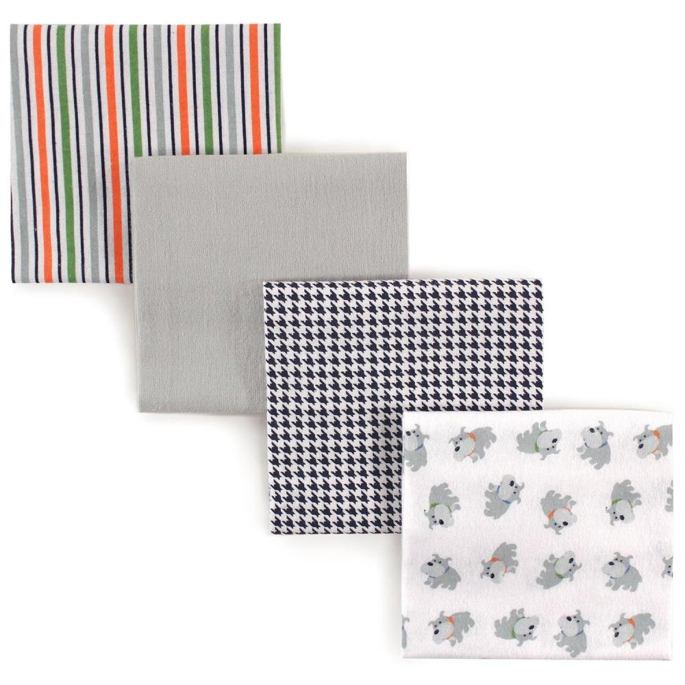 Luvable Friends Unisex Baby Cotton Flannel Receiving Blankets, Tribe 4-Pack, One Size(Dog 4-pack)