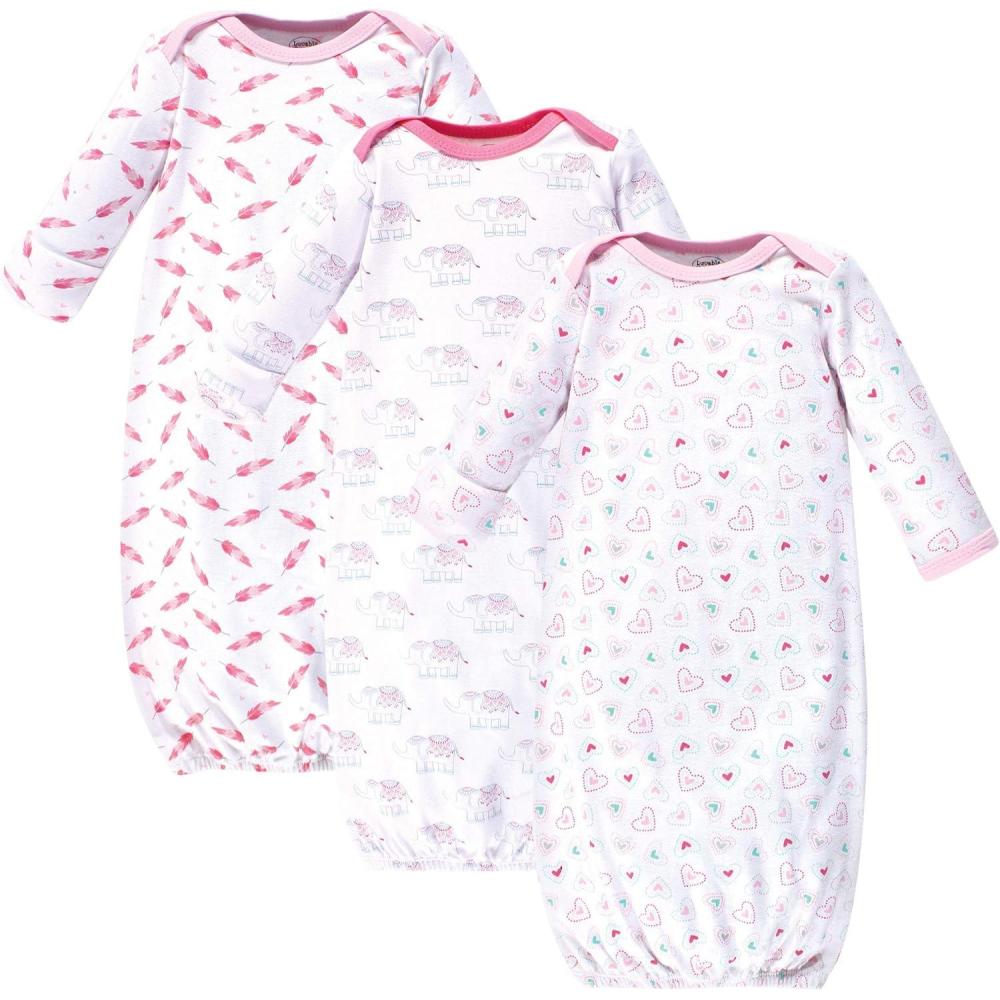 Luvable Friends unisex-baby Cotton Gowns(Girl Elephant Hearts)