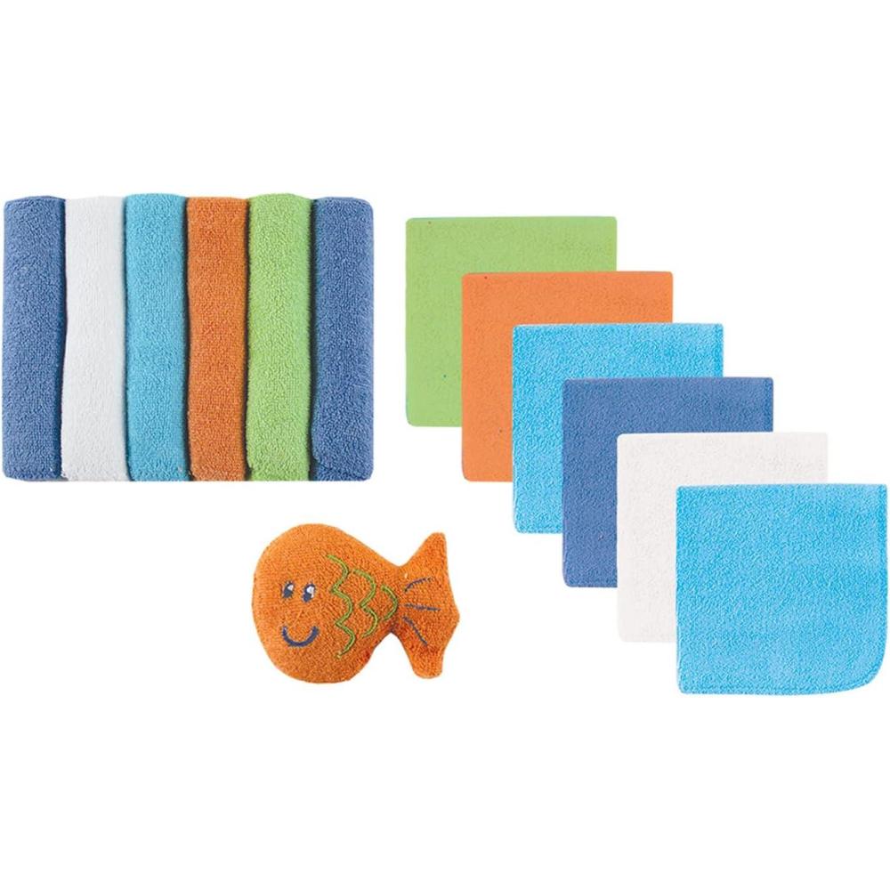 Set includes twelve washcloths and bonus toy