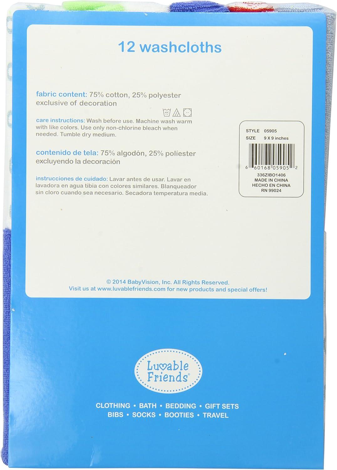 Luvable Friends 12 Washcloths in Bag comes with twelve very colorful and soft washcloths, plus a bonus soft toy. The whole thing is nicely packaged in a reusable bag. Available in 2 color choices: Blue and Pink.