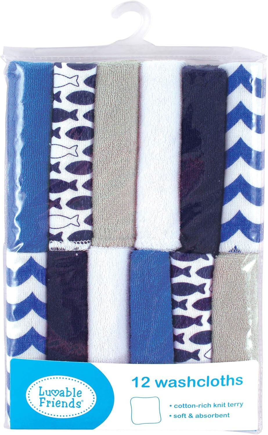Luvable Friends 12 Washcloths in Bag comes with twelve very colorful and soft washcloths, plus a bonus soft toy. The whole thing is nicely packaged in a reusable bag. Available in 2 color choices: Blue and Pink.