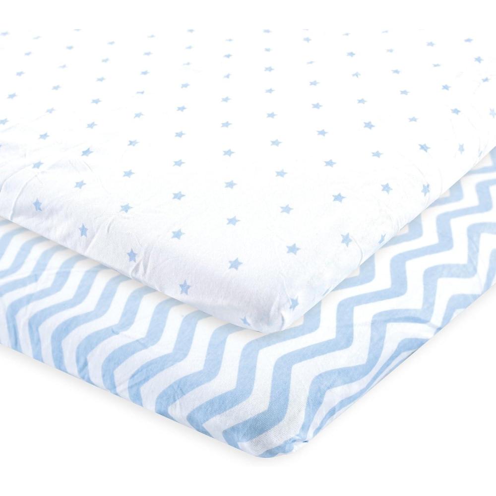 Luvable Friends Unisex Baby Fitted Playard Sheet, White, One Size(Blue Chevron Stars)