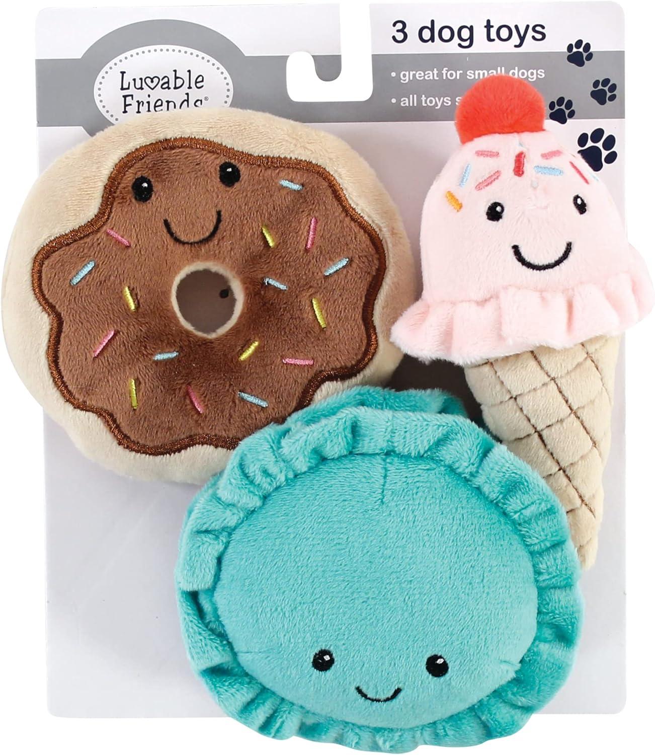Luvable Friends Unisex Baby Squeaky Plush Dog Toy with Rope(Desserts)